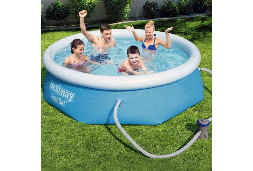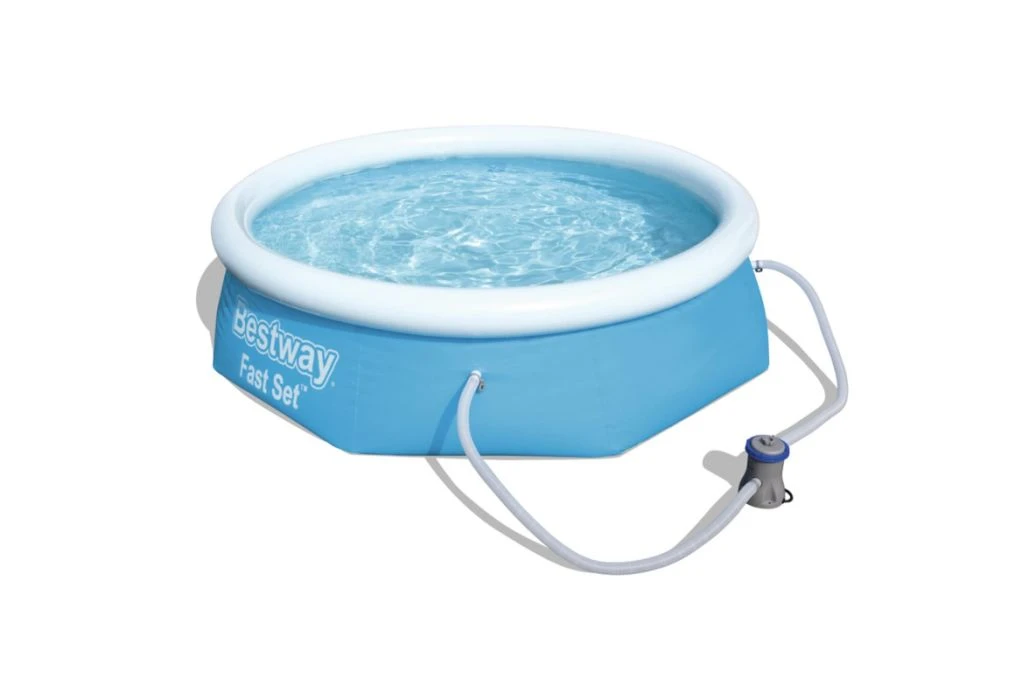 Het grote voordeel van dit zwembad is dat de ring opblaasbaar is waardoor dit zwembad zonder extra gereedschap gemakkelijk is op te zetten. Daarnaast wordt het zwembad inclusief filterpomp geleverd, waardoor het water in goede conditie blijft. Dit is belangrijk voor helder en gezond zwembadwater. Gebruik naast deze filterpomp nog een waterbehandelingsproduct. Hierdoor kun je de hele zomer blijven genieten.