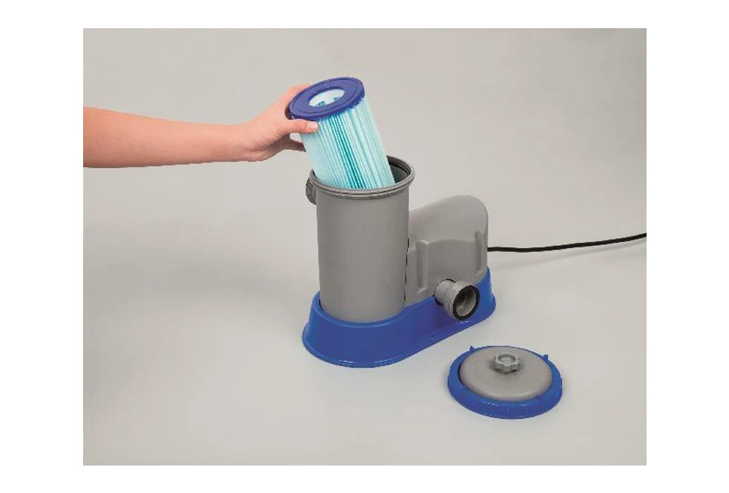 Deze filterpomp zorgt voor een goede circulatie in het zwembadwater. Zo krijgen bacteriën, algen en schimmels geen kans om zich te ontwikkelen. Tegelijkertijd filtert de filterpomp al het vuil uit het zwembadwater. Het vuil blijft in het filtercartridge van de pomp achter.