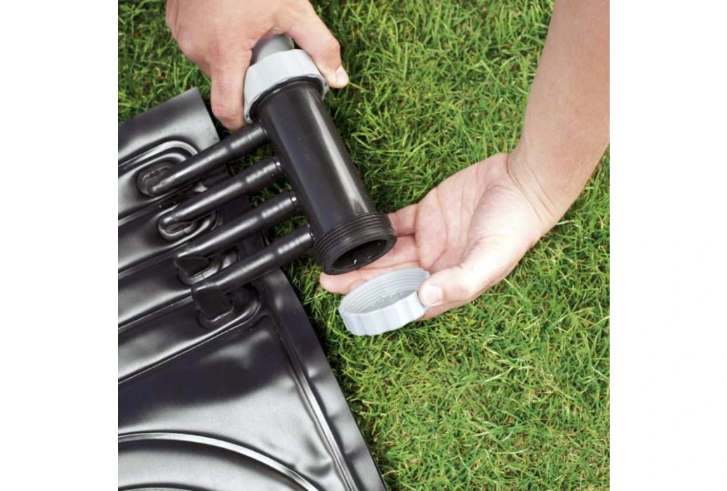 - plaatst de solarverwarming tussen de filterpomp en de slang welke het gefilterde water terug voert naar het zwembad