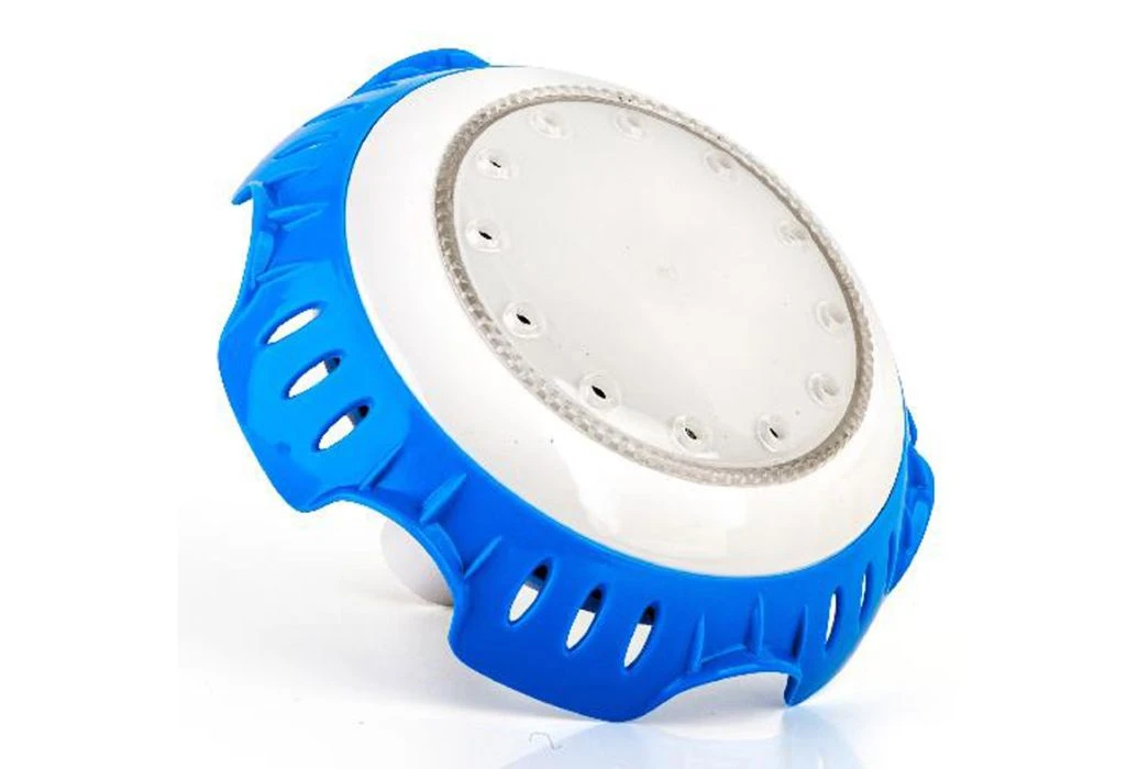 Fraaie gekleurde LED verlichting voor je bovengrondse stalenwand zwembaden. Deze verlichting is aan te sluiten op de uitlaat van de pomp en die levert de gevraagde energie.