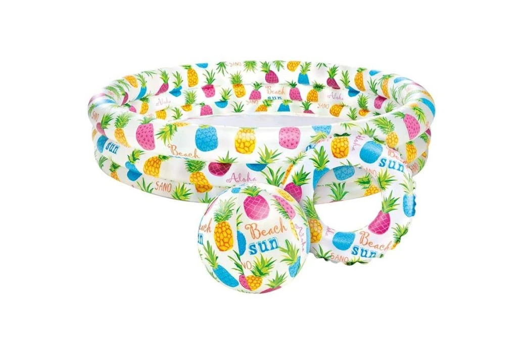 Met deze leuke opblaasbare ’tropische’ zwembadset kun je uren spelen en zwemmen met je vriendjes en vriendinnetjes. Samen met een opblaasbare flamingo, vis of grappige duikstaafjes vermaken de kids zich wel in dit badje.