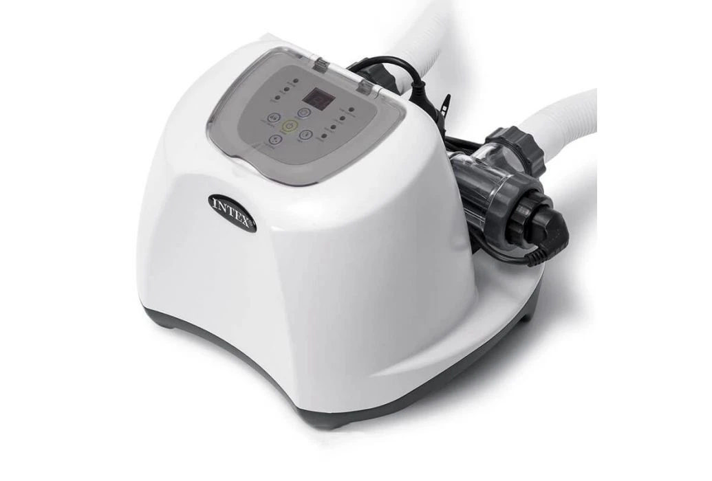 Wanneer je het Intex zoutwater systeem groot wilt installeren is het belangrijk dat deze tussen de filterpomp en het zwembad wordt geplaatst. De materialen welke benodigd zijn voor de installatie van het zoutwater systeem worden meegeleverd. Het zoutwater systeem is geschikt voor zwembadslangen met Ø 32 en 38 mm aansluitingen. Waar rekening mee moet worden gehouden is dat de zwembadpomp een minimale capaciteit van 2650 liter per uur heeft. Dit omdat er anders te weinig water door het zoutwater systeem gepompt wordt. Het zoutwater systeem zal dit ook aangeven wanneer dit het geval is. Wanneer je je zwembad verwamt door middel van solarverwarming is het erg belangrijk om het zoutwatersysteem als allerlaatste in de serie van apparatuur te installeren. Dit om gasvorming in de solarcollector of solarbol te voorkomen.