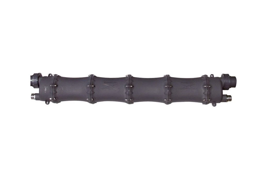 Deze warmtewisselaar van MTS met een vermogen van 120 kW heeft hoog isolerende capaciteiten. De behuizing is vervaardigd uit corrosiebestendig kunststof met een RVS binnenwerk. Het verwarmingsmedium wordt gevoerd door een V4A-verwarmingsspiraal en V4A-warmwateraansluitingen. De convexe, concave constructie met afbuigelementen genereert een hoogvermogenstransmissie.