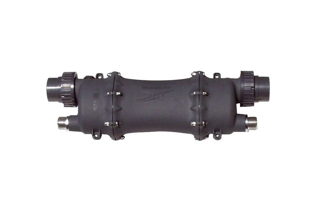 Deze warmtewisselaar van MTS met een vermogen van 40 kW heeft hoog isolerende capaciteiten. De behuizing is vervaardigd uit corrosiebestendig kunststof met een RVS binnenwerk. Het verwarmingsmedium wordt gevoerd door een V4A-verwarmingsspiraal en V4A-warmwateraansluitingen. De convexe, concave constructie met afbuigelementen genereert een hoogvermogenstransmissie.